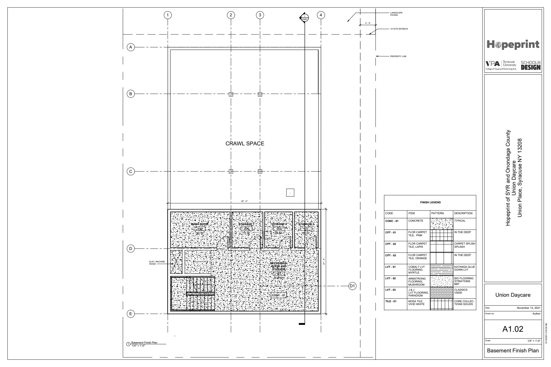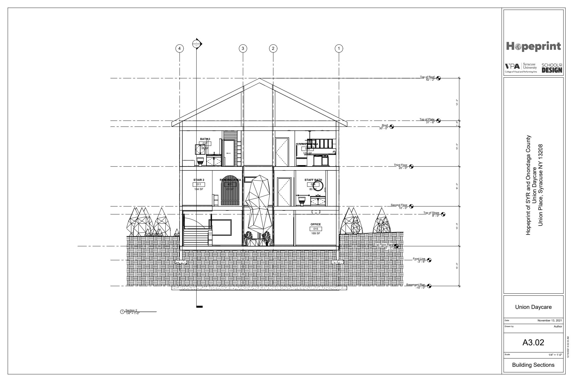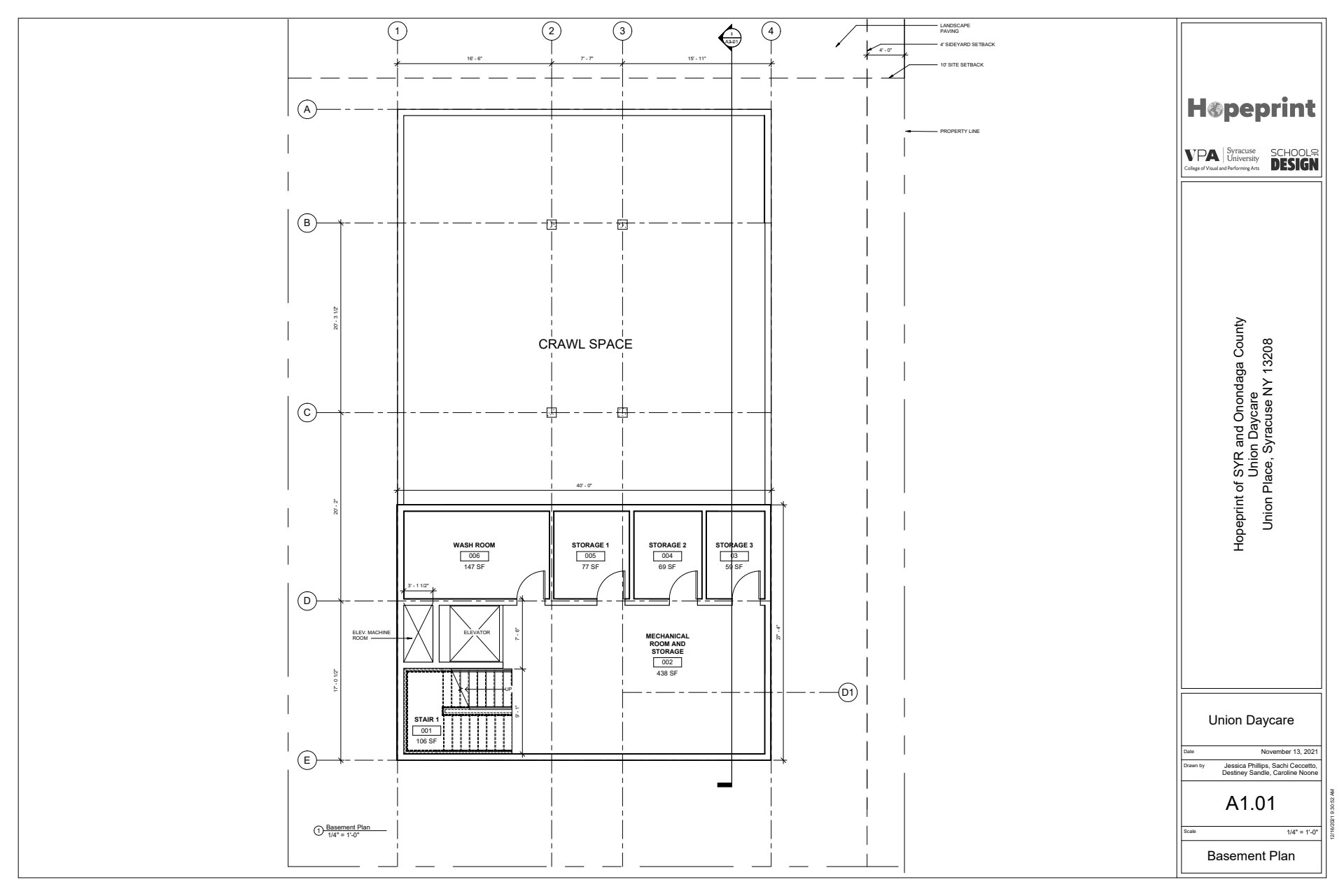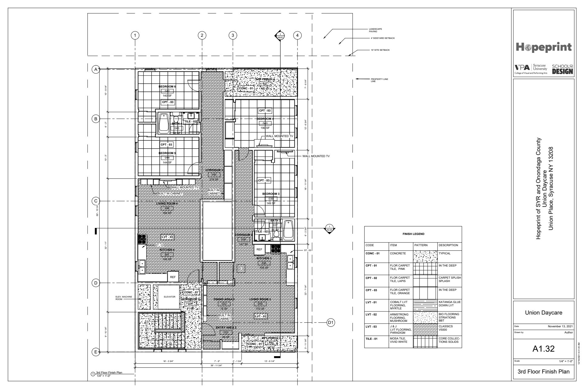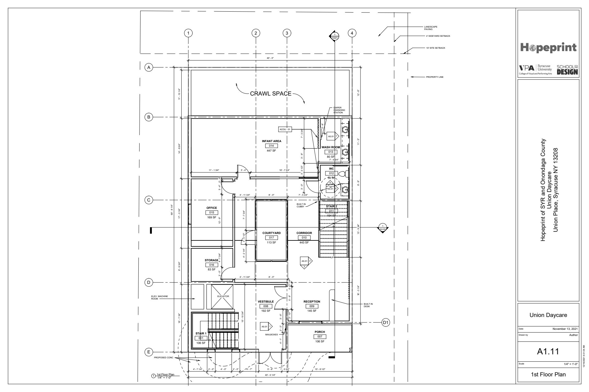 Alvord Day is part of a split occupancy building design serving two functions; the daycare is a commercial space and the apartments above are residential. The project’s client, Hopeprint, sought a space for residents of the Northside micro neighborhood to leave their children while living nearby.