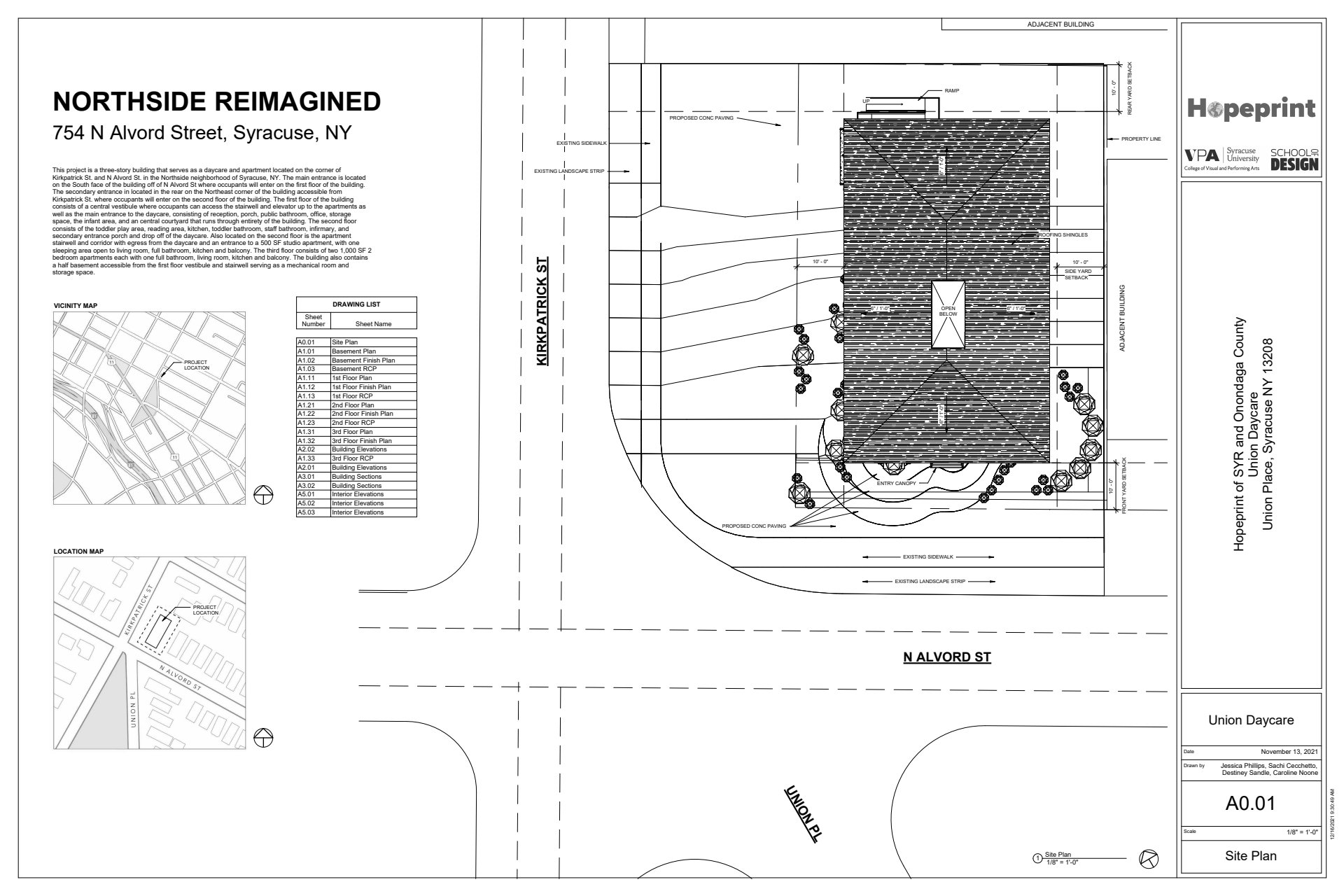 The project site is located on the corner of North Alvord Street and Kirkpatrick Street. Inspired by organic forms found in nature, our design utilizes playful arches and windows that connect to the outside environment.