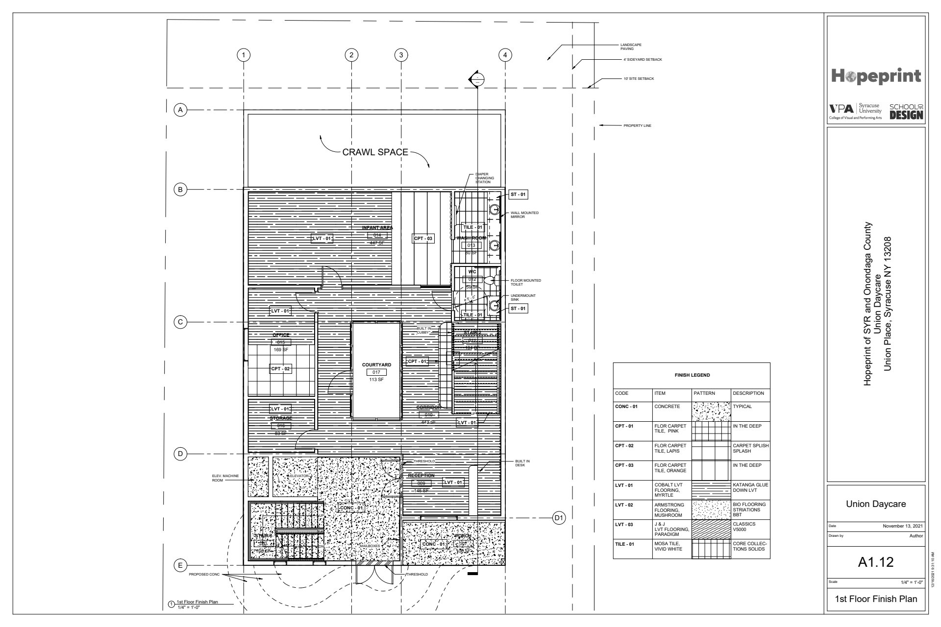 Our goal as a group was to create a family oriented, culturally inclusive space which brings hope and stability to resettled refugees. The daycare features vibrant tones, an open interior courtyard to bring in light, and flexible play areas for children.