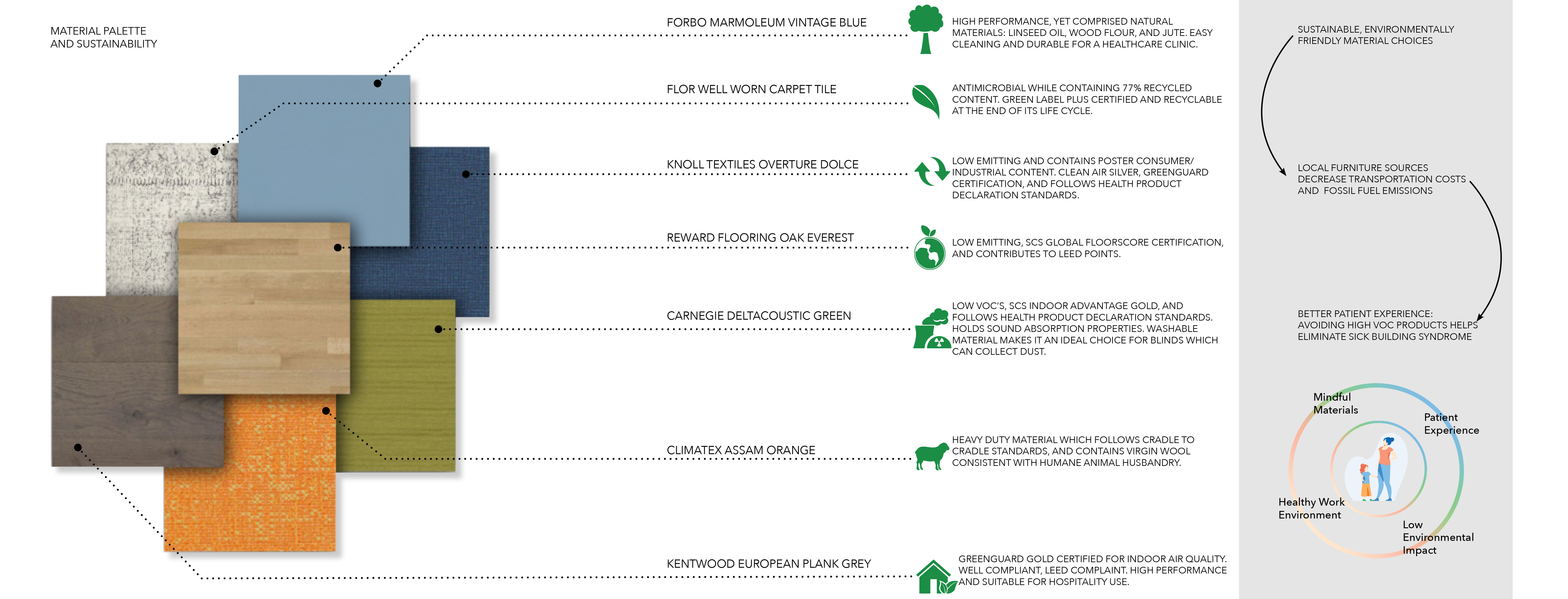 To create a primary care clinic that provides patients a refuge from a busy city lifestyle, integrating positive distractions to reduce stress. The clinic utilizes lean design in a way to emphasize visual hygiene in a post pandemic world, so that staff can collaborate without relying on proximity. Health and well-being are combined with flexible interior arrangements, embracing a seamless modern design without jeopardizing equitable living spaces.