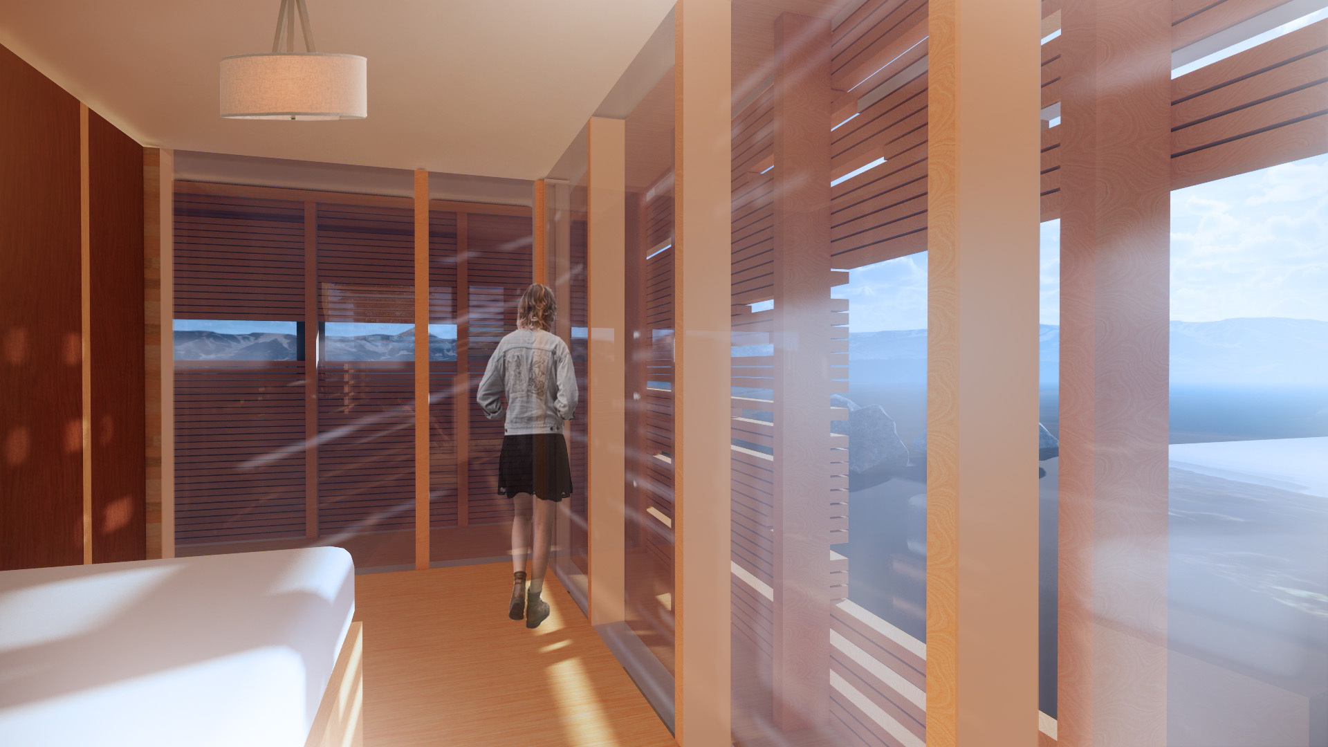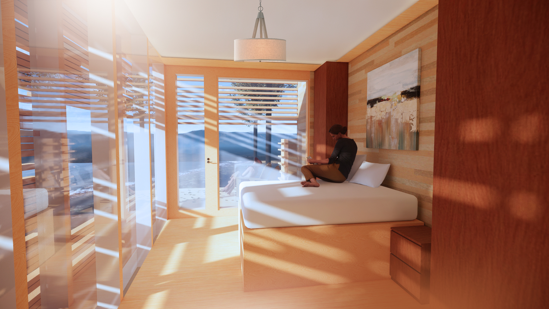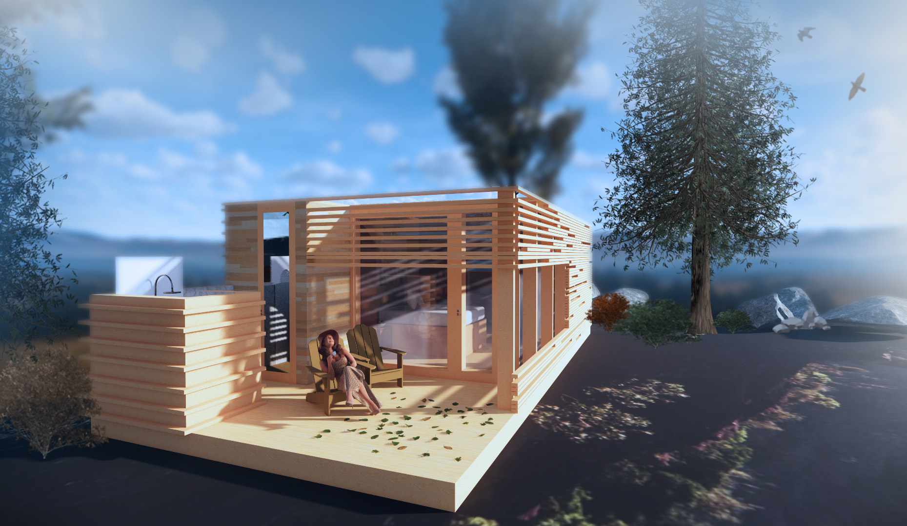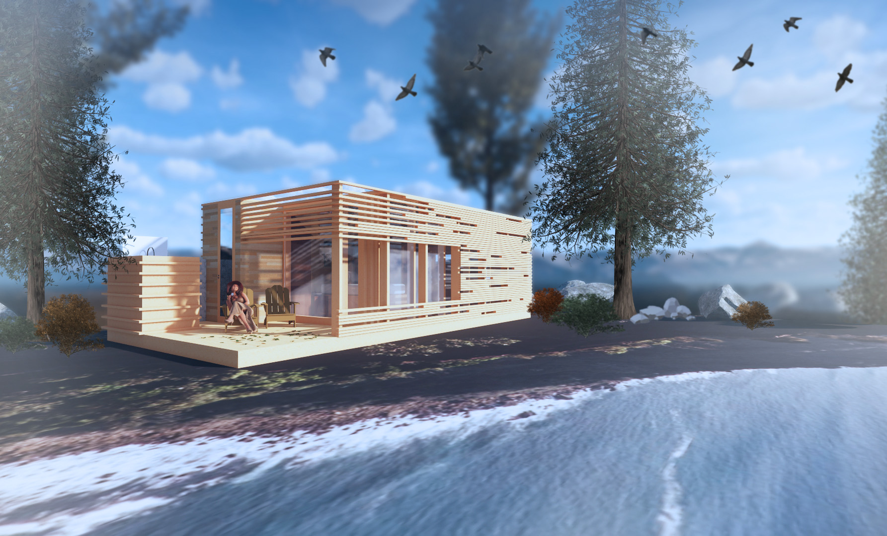 Sunset Cabin was designed by Taylor Smyth Architects and is located in Ontario Canada. Below is a study of the building structure. Software: SketchUp, Enscape, and Adobe Photoshop.